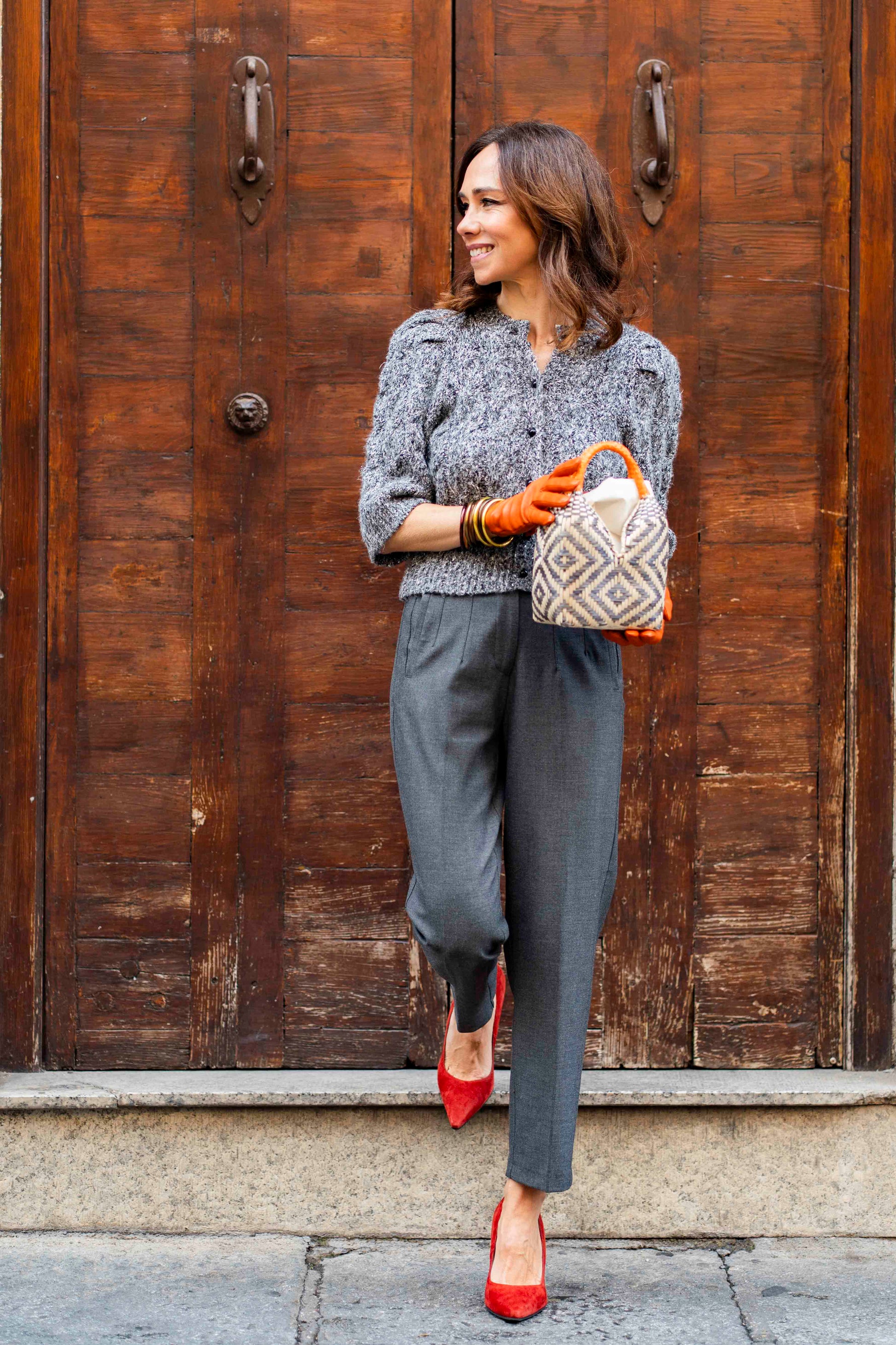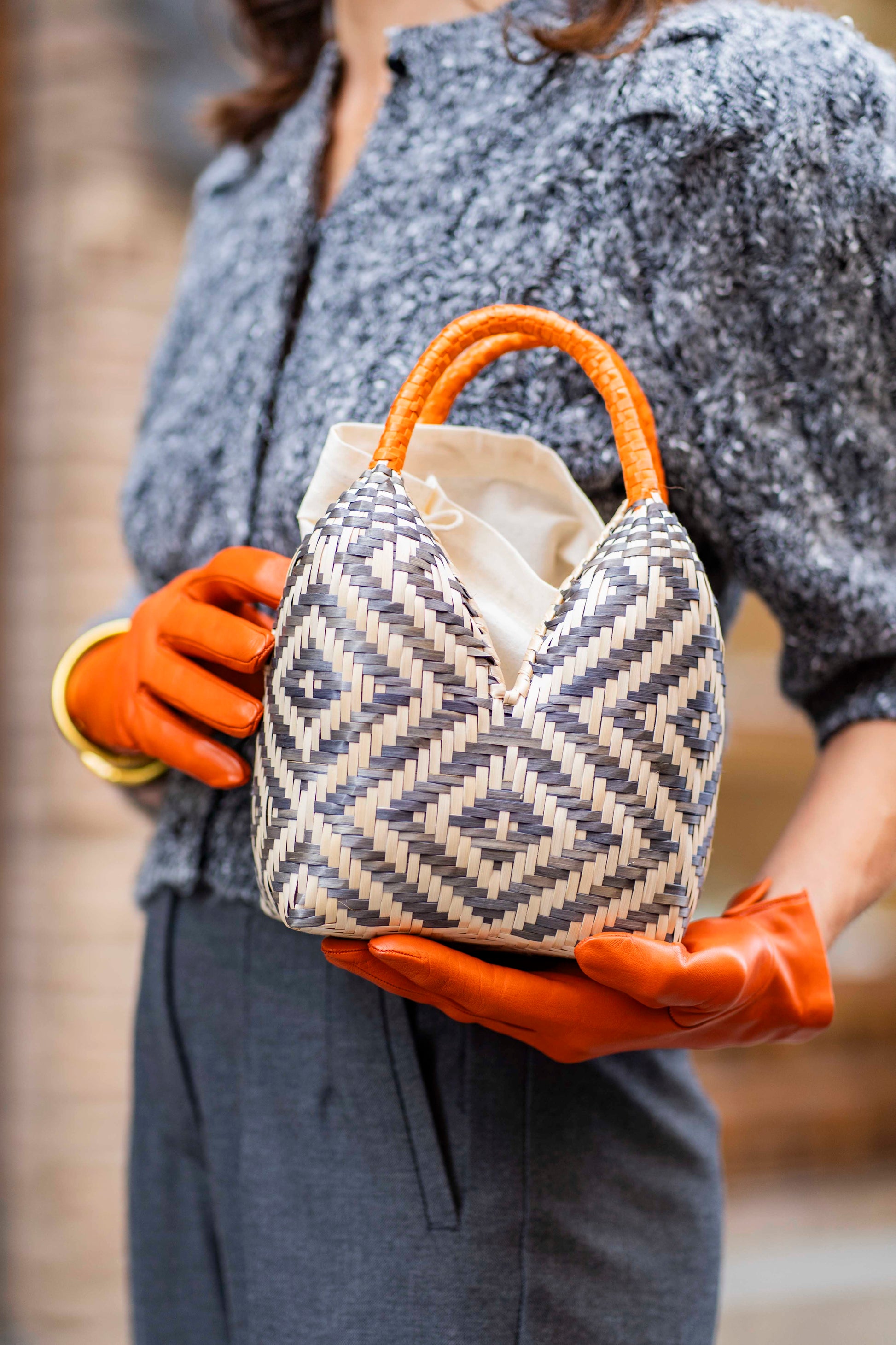 Bolso de Palma Natural Tetera ( Gris-Naranja)