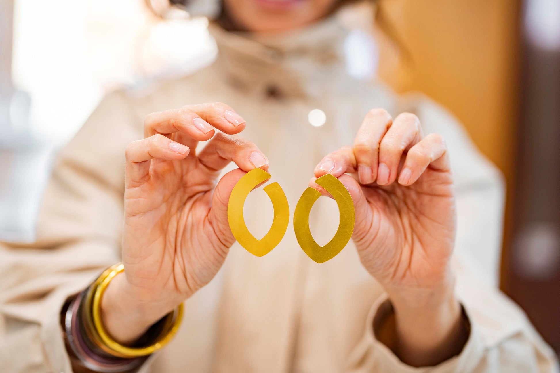 Pendiente hecho a mano con latón de la mejor calidad. Acabado mate y muy ligero. Hipoalergénico porque no contiene níquel, ni plomo. Pendiente ideal para ser la perfecta invitada, destacar en cualquier evento, o simplemente porque te gustan los pendientes XXL elegantes y diferentes. Longitud 6 cm.