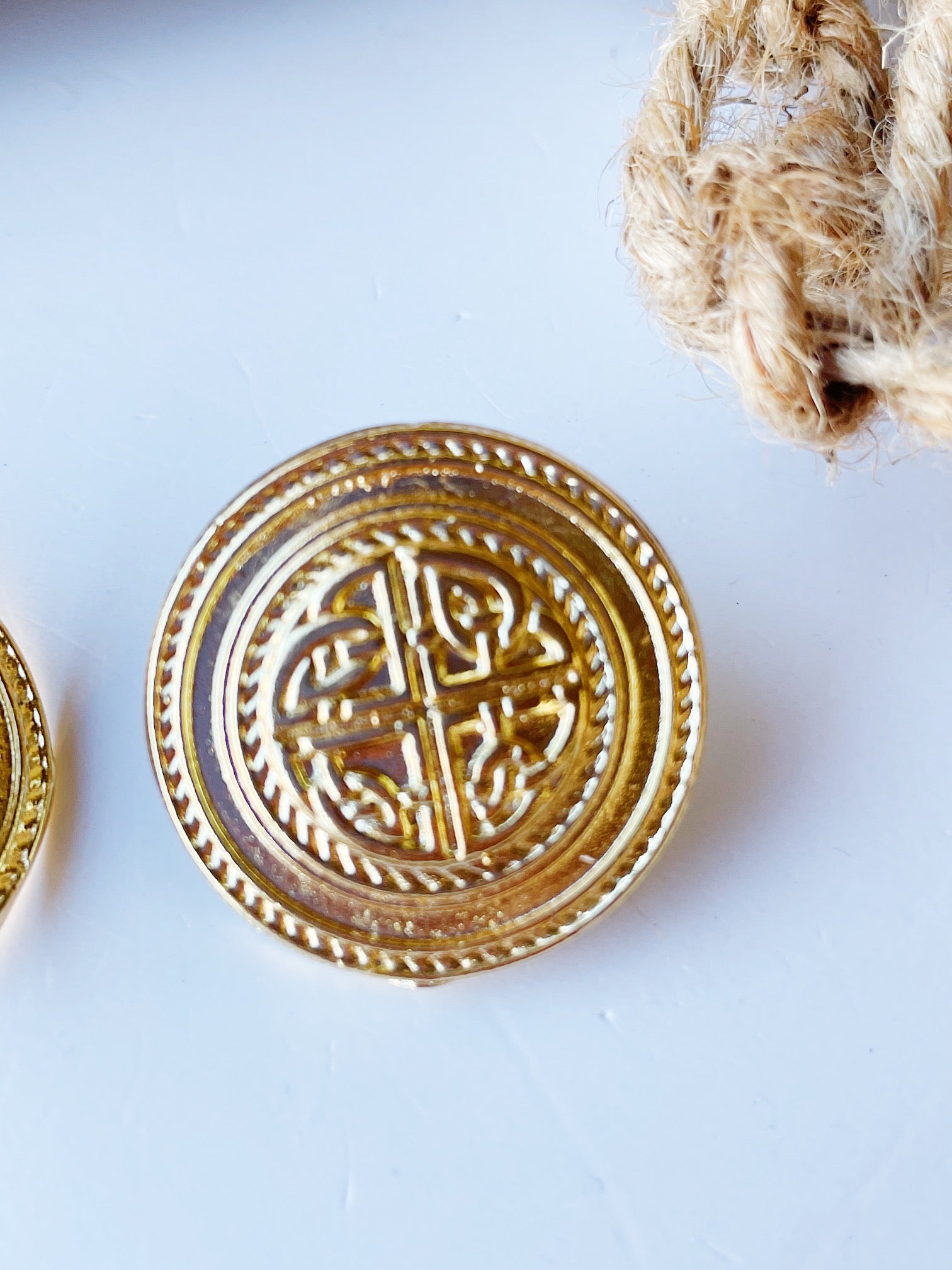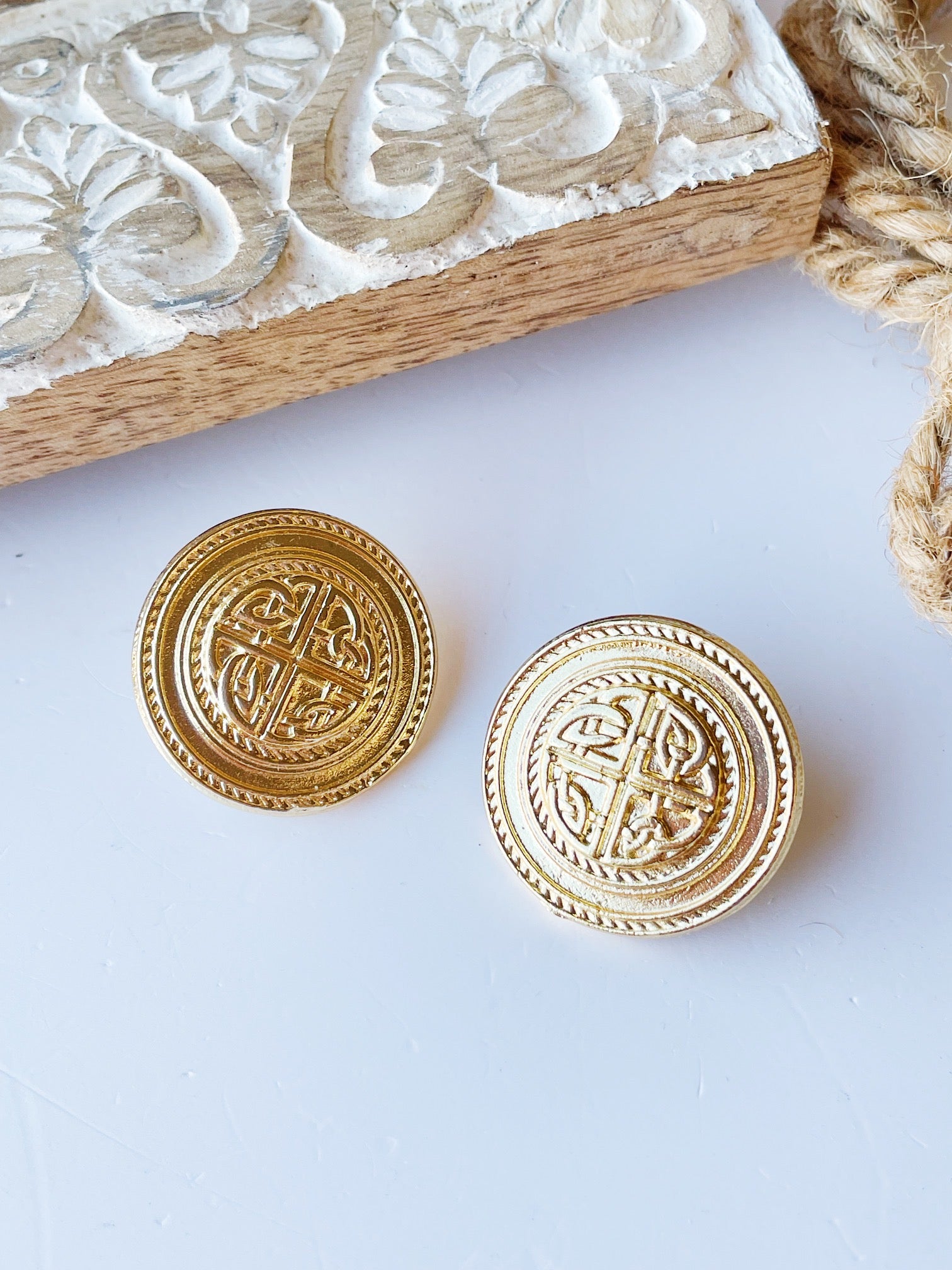 Diámetro 2,5 cm. Cierre de presión. Muy ligeros y estilosos. Las piezas de la Colección Invitada están realizadas a mano, y son diferentes y únicas . Especialmente indicado para personas con el orificio de la oreja rasgada, pues tiene el cierre a i cm del borde por lo que te tapará el agujero completamente.