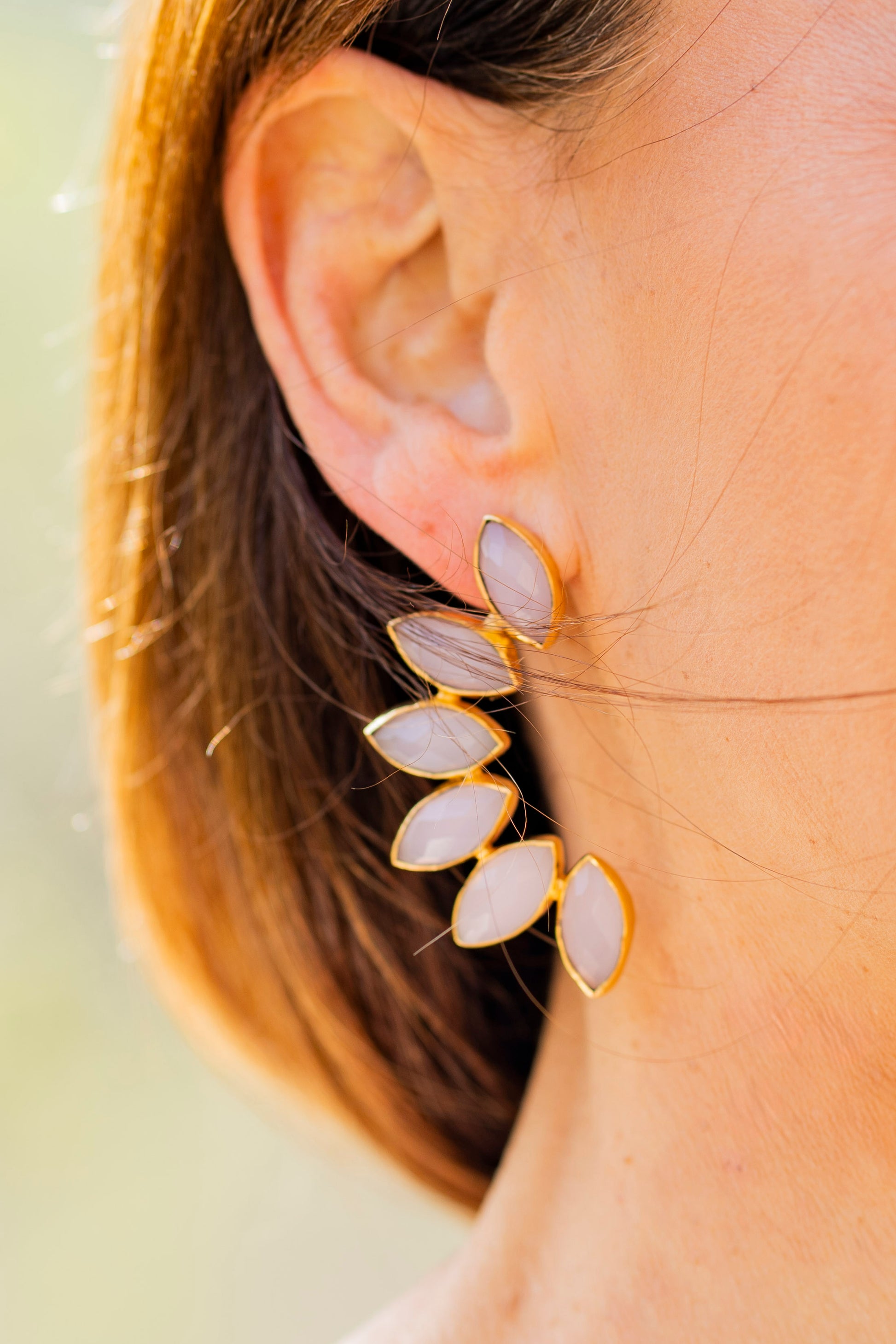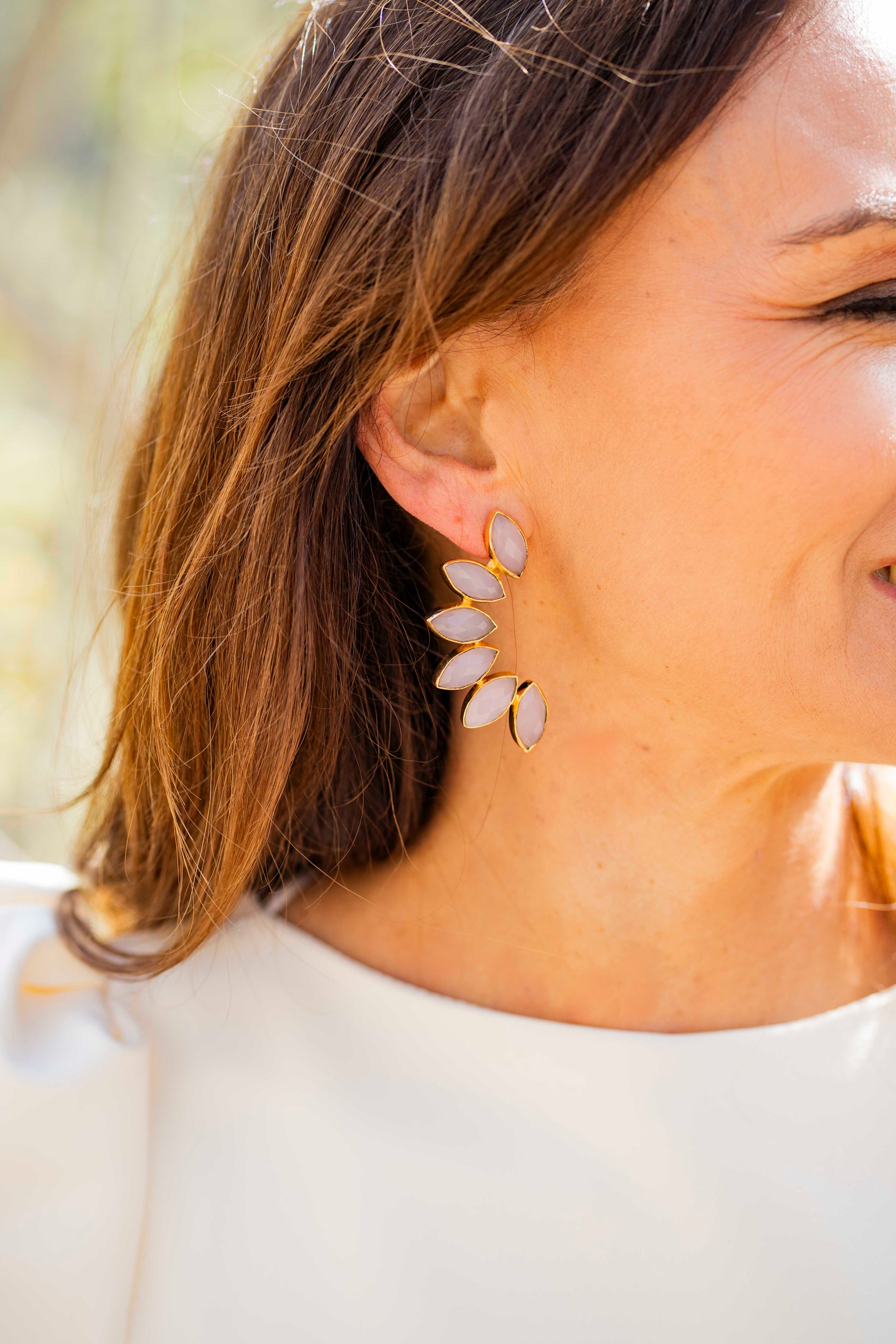 Pendientes de piedras naturales realizados artesanalmente en latón, de 6 cm de longitud. Muy favorecedores y estilosos. Pendientes hipoalergénicos. Los pendientes mas elegantes para las invitadas mas estilosas.